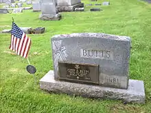 Butts was wounded on June 14 near Orglandes, France. He was wounded again on June 16 as his unit crossed the Douve River.[2] On June 23, he was fatally wounded by machine gun fire while attacking a well defended enemy held hill.[2] For his heroic actions and leadership under enemy fire on June 14, 16, and 23, he was posthumously awarded the Medal of Honor.