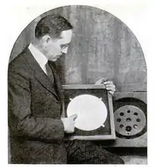 ![]() Peters and his klydonograph, pictured in Popular Science, August 1929 | |