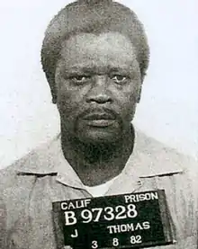 He received a dishonorable discharge, according to his military records, and was arrested for burglary and attempted rape in Los Angeles. Thomas was convicted of these crimes and sentenced in 1957 to six years in the California state prison system. As a result of a pair of parole violations, Thomas remained incarcerated until 1966.[5]