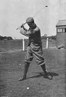 ![]() Graham hitting a tee shot, circa 1900 | |