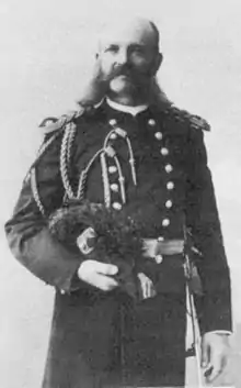 John Harris Soper (1846–1944) was Marshal of the Kingdom of Hawaii during the period of 1884-86 and 1888-90. He was born November 17, 1846, in Plymouth, Devon, England to Thomas Harris Soper and Mary Kipling Soper.[1] A military man, he became Commander-in-chief of military forces of the Provisional Government of Hawaii in 1893; Adjutant General and Chief of Staff during the period of 1894-1907; and retired as Brigadier General of the National Guard of Hawaii in 1907, having previously served in the California National Guard.[2] Also a businessman, he was President of Hawaiian News Company in Honolulu; and also managed Soper, Wright & Company, a sugar plantation, on ʻŌʻōkala, Hawaii.[3][4] He served as honorary vice-president of the Societe des Sauveteurs du Dernier Adieu; and was a member of the Hawaiian Lodge No. 21, F. & A. M. Soper married Mary Elizabeth Wundenberg at Vallejo, California in 1871; they had five children.[1]