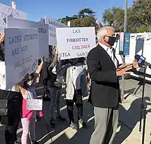 In 2016, Cox proposed an initiative statute that would require legislators to wear the logos of their top 10 donors on their suits when advocating for policies on the Senate or Assembly floor, much like NASCAR drivers wear sponsors on their race suits.[31] Due to insufficient signatures, it failed to qualify for the general election that year. While the initiative was probably not legal due to a 1940s federal legal finding that politicians could not be forced to reveal or display their donors publicly, the intention was to get the voters to be concerned about who the legislators were beholden to, and, thereby, just like the Neighborhood Legislature measure, reduce the power of special interest money.[32]