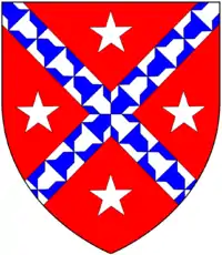 - Arms of Hill of Houndstone, Somerset (Dorset?): Gules, a saltire vair between four mullets pierced argent