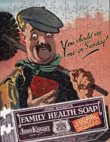 The affordable soaps produced by John Knight & Sons helped to prevent disease and keep citizens healthy. The soap company promoted hand washing via print publications and postcards. Their public messaging of cleanliness was especially important during wars and disease epidemics. The anti-bacterial soap was distributed to soldiers and POWs during the wars.[5]
