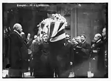Griffiths married Caroline Henderson in 1889.[5][6] He died suddenly, from an apparent heart attack,[7] in London in 1914, aged 58 years.[2] His funeral was held in New York City, and his grave is in Brooklyn's Green-Wood Cemetery.[8] His widow edited a collection of his speeches, The Greater Patriotism, published in 1918.[9] His home in Indianapolis is now known as the Kemper House, and houses the Historic Landmarks Foundation of Indiana.[10]