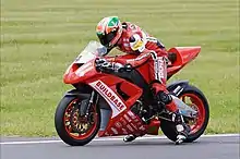 ![]() John Laverty riding the Buildbase Kawasaki during the 2009 BSB championship at Snetterton | |