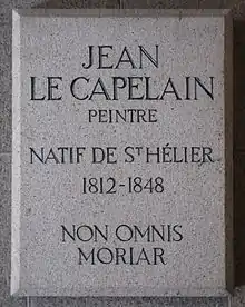 John Le Capelain, later known as Jean, (1812–1848) was a painter often claimed to have been born in Saint Helier, Jersey, the son of Samuel Le Capelain, a printer and lithographer, and Elizabeth Anne Pinckney, his English wife. He was actually born in London and baptised there two days after his parents married there. After returning to his father's native island, he followed his father's trade in lithography but abandoned it later in life. He also learned the art of painting, without any formal training. About 1832 he returned to London and practiced as water-colour painter. His technique gave his paintings a particularly misty and foggy effect. After Queen Victoria's visit to Jersey in 1846, a volume of drawings by Le Capelain of scenery of the island was presented to her as an official souvenir by the States of Jersey. This led to his receiving a commission from the Queen to paint pictures of the Isle of Wight. While engaged on these he developed tuberculosis, of which he died in Jersey in 1848.