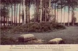 Although the grounds of Chateau Hougoumont contain a stone marking Blackman's grave, his remains were moved to the Waterloo monument in Brussels Cemetery in 1889.[3]