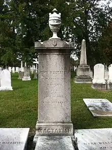 MacTavish died on June 21, 1852 at age 65. His widow died on January 26, 1867 at Folly Quarter and was interred with MacTavish at Green Mount Cemetery in Baltimore, Maryland.[16]