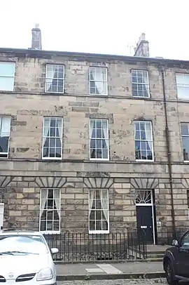 He died at home, 15 Abercromby Place, a short distance from his birthplace, on 9 May 1919. He is buried in St Cuthbert's Churchyard at the west end of Princes Street.[2]
