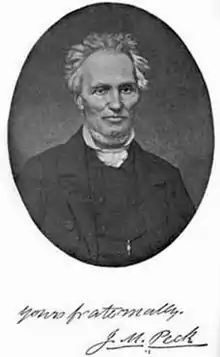 Peck also helped establish the Illinois State Baptist Convention in 1834, and became its first president. He wrote prolifically, including on agriculture, frontier history and Native American matters. In 1843 he founded the American Baptist Publication Society. Peck also established a weekly religious journal, the Western Pioneer. Harvard University awarded Peck an honorary degree in 1852.[3] Two years later, Illinois' legislature commissioned him to write the first history of the state. Peck also founded the Western Baptist Historical Society, and briefly served in Covington, Kentucky.[5]