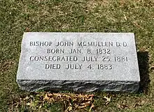 John McMullen (January 8, 1832 – July 4, 1883) was a 19th-century bishop of the Catholic Church in the United States. He was the first bishop of the Diocese of Davenport in the state of Iowa from 1881 to 1883.