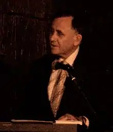 ![]() John Mickel speaks at a book launch in Brisbane, Australia in June 2011 | |