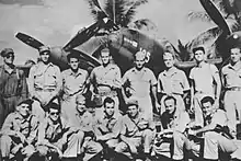 After re-organizing, and training new recruits as well as possible, Mitchell and the members of the 70th Fighter Squadron embarked for Fiji on Jan. 20, 1942. They were given the new aircraft, the Bell P-39 Airacobra. Landing at the harbor of Suva, the men of the 70th FS began to struggle with their P-39s in the tropical downpours and mud of Fiji. On October 5, Mitchell and eight of his pilots were detached from the 70th FS for duty on Guadalcanal with the 339th Fighter Squadron of 347th Fighter Group.[2]
