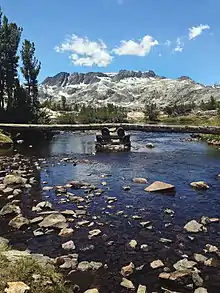 Construction of the JMT began in 1915, a year after Muir's death, with a $10,000 appropriation from the California legislature.[12] State Engineer Wilbur F. McClure was responsible for selecting the final route. He secured the cooperation of the United States Forest Service, which managed and supervised much of the actual construction.[14] The California state legislature made additional appropriations of $10,000 each in 1917, 1925, 1927 and 1929.[12][13]