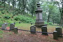 Hungerford died at his house in Corning, New York, on the evening of April 2, 1883.[90] A case of dysentery led to blood poisoning, which killed him.[91] As her husband's health declined in his final days, Susan Aber Hungeford, John's second wife, became ill while pondering widowhood again.[92] John was interred in the Glenwood Cemetery, in Watkins Glen, New York next to his first wife, Mary W. Gansevoort, and some of her family members.[93] J.N. Hungerford's Bank was closed after its founder died.[94] The settlement of the estate of John Newton Hungerford was a messy affair which caused one of his executors—Absalom Hadden, Esq.—to eventually commit suicide on October 7, 1889.[95]