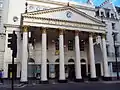The other theatre was the Theatre Royal Haymarket (1821), with its fine hexastyle Corinthian order portico, which still survives, facing down Charles II Street to St. James's Square, Nash's interior no longer survives (the interior now dates from 1904).[64]