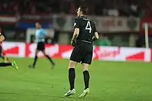 O'Shea was selected in manager Martin O'Neill's 23-man squad for UEFA Euro 2016 in France.[47] In the absence of Robbie Keane, he captained the Irish in their first two group matches, a 1–1 draw with Sweden and a 3–0 loss to Belgium.[48][49] He was one of several players who lost their starting place for the decisive final game against Italy, as he and defensive partner Ciaran Clark made way for Shane Duffy and Richard Keogh; the game ended with a 1–0 victory.[50][51] In the last 16, as Ireland lost 2–1 to the hosts at Parc Olympique Lyonnais, O'Shea entered as a 68th-minute substitute for James McClean.[52]