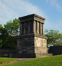 He died of strangury on 20 July 1819, and, although an eminent man, was buried in an unmarked grave in Old Calton Burial Ground, on Waterloo Place in Edinburgh. His, and his brother, James's graves were marked by a plaque unveiled in 2011 following a local campaign.[12] The monument to his memory by William Henry Playfair, on Calton Hill,[13] is visible from the spot.