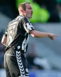 Potter took control of the Dunfermline Athletic first team in December 2014, after Jim Jefferies left the club.[3] It was announced at the end of the season that, after failing to secure promotion or a play off position, Potter would step down as manager and return to his position as head coach.[4][5] Although having not played since May 2014,[6] Potter was registered as a player for the Pars during the 2015–16 season, and was an unused substitute in a number of first-team matches.
