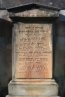 He died on 29 December 1861, shortly before his 87th birthday.[4] He is buried in Dean Cemetery on the west side of the city. The grave lies on the wall backing onto the first northern extension.