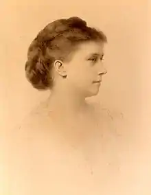 In 1861, Adams married Frances "Fanny" Cadwalader Crowninshield (1839–1911),[17] daughter of George Crowninshield (1812–1857) and Harriet Sears Crowninshield (1809–1873) of the politically powerful Crowninshield family. Fanny was the granddaughter of former United States Secretary of the Navy under presidents Madison and Monroe, Benjamin Williams Crowninshield.[18][19]