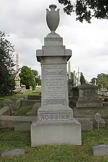 Robbins was a member of the board of education and served as president for many years, as well as president and director of the Kensington National Bank.[2] He died in Philadelphia, Pennsylvania, on April 27, 1880 and was interred at Laurel Hill Cemetery.[3]