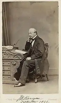 He was born the first son of Thomas Kenyon (the son of Lloyd Kenyon, 1st Baron Kenyon[1]) and Louisa Charlotte Lloyd of Pradoe, Shropshire. He attended Charterhouse School (1819)[2] and then matriculated at Christ Church, Oxford, on 24 January 1825, aged 18. He was awarded his Bachelor of Arts (BA) degree in 1828, and in the same year was elected a Fellow of All Souls College, Oxford. He gained a Bachelor of Civil Law (BCL) degree in 1831 and Doctor of Civil Law (DCL) degree in 1836. He was called to the bar at the Middle Temple in 1835, and became a bencher in 1862. In 1844 he succeeded Philip Williams as Vinerian Professor of English Law, and held the chair until his death. He was also Recorder of Oswestry. He died on 17 April 1880 in Pradoe, the place of his birth.