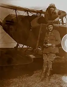 He was then attached to No. 62 Squadron, Royal Flying Corps, to fly in the Bristol F.2b two-seater fighter.[2] No. 62 Squadron moved to France in January 1918,[14] where Gordon was paired with Captain Bill Staton as his pilot.[2] Gordon gained his first aerial victory (Staton's third[15]) on 21 March 1918, and followed it with a triple victory on the 26th. Gordon was promoted to lieutenant on 28 March 1918.[16] His fifth victory, which earned him "ace" status, came on 1 April.[1] The next day Major-General John Salmond, Commander of the RAF in the Field, authorized his recommendation for the award of the Military Cross.[17]
