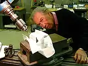 Safer continues to create sculpture. He works with his stepdaughter Kathryn Scott, to whom he taught his trade and offered his mantle.[3] In 2007, they began work on a monumental sculpture, Quest, for the Johns Hopkins Wilmer Eye Institute. The 35-foot-high (11 m) stainless steel fabricated sculpture and state of the art research center, the Robert H. and Clarice Smith Building,[4] was dedicated two years later, on October 16, 2009, 80 years to the day after the pioneering institute's first building made its debut. Safer, a patient, donated the multi-ton sculpture as a gift of appreciation.[5] It is one of the largest gifts of art that Johns Hopkins has received. In December 2011, Scott and Safer began work on a model for a monumental sculpture for the Marine Aviation Memorial.