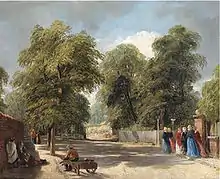 Davis was born in Leominster (the building, 2 High Street, survives[1]), the second of five children of James Davis, a silversmith and watchmaker.[2] Scarlett was his mother's maiden name; she was a distant relation of James Scarlett, 1st Baron Abinger.[2] At the age of eleven, Davis won an award from the local society for the encouragement of the arts. He studied at the Royal Academy Schools in London, and began exhibiting his works at the annual Royal Academy shows in 1825 (with the painting "My Den"). He last exhibited in London in 1844. He was influenced by the work of his contemporary, Richard Parkes Bonington.