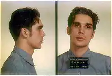 Spenkelink was a drifter who was convicted in California for armed robbery and had been sentenced to five years-to-life.[1] He had just escaped from the Slack Canyon Conservation Camp when he shot and killed a small-time criminal named Joseph Szymankiewicz in Tallahassee, Florida, in 1973.[1] He claimed that he acted in self-defense—that Szymankiewicz had stolen his money, forced him to play Russian roulette, and sexually assaulted him. However, evidence and witness testimony from a co-defendant indicated that Spenkelink left their shared motel room, returned with a gun, and shot Szymankiewicz in the back.[2] He turned down a plea bargain to second-degree murder that would have resulted in a life sentence. In 1973 he was convicted of first-degree murder and sentenced to death. His co-defendant was acquitted.[2]