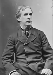 John T. Raymond (1836-1887), whose original name was John O'Brien, was an American stage actor, born in Buffalo, New York, on August 5, 1836; he died in Evansville, Indiana on April 10, 1887. His first appearance was made on June 27, 1853, at a theatre in Rochester, New York, under the management of Messrs., Carr and Henry Warren, as Lopez, in "The Honeymoon." Afterwards, he went to Philadelphia, Baltimore, Charleston, Savannah, Mobile and New Orleans. In 1858 he had his early success with Sothern in Tom Taylor's Our American Cousin, in which he later appeared in London and in Paris. Raymond first became known in New York in 1861, when he appeared at Laura Keene's Theatre, succeeding Joseph Jefferson in low comedy parts, and at that time he acted Asa Trenchard in "Our American Cousin." His greatest popular hit was as Col. Mulberry Sellers in a dramatization of Mark Twain's Gilded Age' (1873), a character that became completely identified with his own breezy optimism. Raymond's professional career extended over a period of thirty-two years, in the course of which he acted in all the parts that usually fall to the lot of a low comedian.