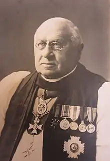 On 1 November 1901, John Taylor-Smith was appointed Chaplain-General to the Forces, and therefore head of the Army Chaplains' Department.[7] His tenure included the First World War, and he oversaw the expansion of the Army Chaplains' Department from around 120 chaplains in 1914 to almost 3,500 in 1918.[8] He retired in 1925.[4]
