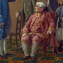 In 1765 he was a larger seated figure included in a caricature[5] painting by Thomas Patch.[4][6] Patch was another Englishman living abroad and he had left Rome for Florence after he had been banished for a scandal based on his homosexuality.[7]