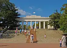 Upton was able to make Sevastopol harbour accessible to large ships where others had failed. He designed the water supply, road layout and many features of Sevastopol town and harbour including the Grafskaya Quay,[5] He had been commissioned as an engineering officer and rose to the rank of Colonel Engineer. In Odessa he built the Primorsky Stairs designed earlier by a Russian architect. In Russia he was assisted by his sons John, William, Thomas and Samuel who went on to become an architect and Russian academician. John Upton worked extensively in Sevastopol to build a huge set of dry docks for the Russian Black Sea Fleet. These docks were completed just before the outbreak of the Crimean War. At the conclusion of the siege of Sevastopol, the Dry Docks were destroyed by British and French soldiers. During the Crimean War William Upton was held for a short time by the British military who hoped he would reveal details of Sevastopol harbour defences.[6]