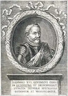 Count John VII of Oldenburg and Delmenhorst (nicknamed "the Dike Builder"; 9 September 1540 in Oldenburg – 12 November 1603 in Oldenburg) was a member of the House of Oldenburg and was the ruling Count of County of Oldenburg from 1573 until his death. His parents were Count Anthony I of Oldenburg and Sophie of Saxe-Lauenburg.