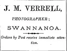 Verrall first settled in Ohoka, where he bought some land. In 1893, he sold up and moved to the nearby Swannanoa.[2] During his time in Swannanoa, he advertised as a photographer using the surname Verrell.[4]