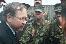 John William Blaney (born 1948)[1] was a United States State Department official and former U.S. Ambassador to Liberia.[2] Ambassador Blaney led successfully U.S. efforts to end Liberia's long civil war, including crossing no man's land in 2003 to negotiate an end to the fighting, which enabled the formal peace process in Ghana to conclude successfully the Comprehensive Peace Agreement. For his achievements in Liberia, Ambassador Blaney was awarded the Secretary of State's Distinguished Service Award, the highest diplomatic honor of his nation. Previous diplomatic assignments included Chief of Mission at the U.S. Embassy in South Africa, Director for Southern African Affairs at the State Department, Presidential designation as the U.S. Deputy Representative to the ECOSOC of the United Nations, Minister-Counselor at U.S. Embassy Moscow (as the Soviet Union was disintegrating), and positions working on several nuclear arms control negotiations (including principal drafter and a negotiator of the U.S.-USSR Nuclear Risk Reduction Centers Agreement). He also served as a Legislative Assistant in both houses of Congress, and as an economist at the U.S. Treasury and State Departments. During the course of his career, Ambassador Blaney received many State Department honors as well as Presidential and foreign awards, including Liberia's Order of the Knight Great Band, and an honorary doctorate in Political Science. He is the author/editor of Successor States to the USSR (Congressional Quarterly Books, 1995), and many journal articles including, "The Art of Strategy Creation for Complex Situations" (PRISM, 5-3, National Defense University, and elsewhere). Prior to his diplomatic career, Blaney served as an officer in the U.S. Army.[2]