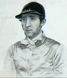 Of his riding style, 19th-century observer Henry Custance said, "He was a very strong man on a horse... always sat well back in his saddle, kept hold of the horse's head and was a very resolute finisher."[6] Despite this, he was not known as a stylish jockey.[2][8] He did, however, maintain a unique style off the track, known for wearing tartan suits, red slippers and feathered hats.[2] When mocked for this, he was reported to have replied with characteristic vanity, "My tailor makes my clothes for nothing. It is not often he comes across a figure like mine to fit them on."[9] In turn, Hawley commented, "I don't care how he dresses; he is a good enough jockey for me."[9]