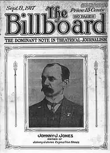 His fame grew along with his program; in 1917, he was featured on the covers of Billboard and Optimist magazines. Jones had a reputation for running a clean operation, suitable for children.[8] By 1928, Jones had two traveling carnivals. He combined these into the second-largest traveling show in America, the 50 car, 100-wagon exhibition coming in behind Ringling Bros. and Barnum & Bailey Circus.[7]