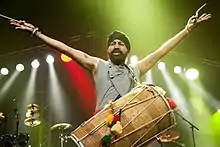 He performed at a number of World of Music, Arts and Dance (WOMAD) festivals around the world.[5] While performing at ceremonial weddings, Kalsi was encouraged to teach his techniques to others.[6] He became the first dhol player to perform live with DJs, which appealed to younger audiences.