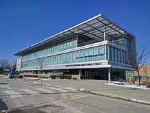 The 1952 Johnson County Courthouse was closed in 2020, then demolished in 2021.[1] It was replaced by a seven-story courthouse in 2021 after over two years of construction. This new courthouse is the counties fourth building.[2]