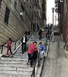 The "Joker Stairs" is the colloquial name for a step street connecting Shakespeare and Anderson avenues at West 167th Street in Highbridge in the Bronx, New York City.[1] Located near the 167th Street station on the New York City Subway's 4 train,[2] the stairs served as one of the filming locations in the 2019 film Joker.