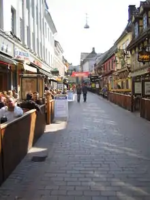 Jomfru Ane Gade (English: Virgin Anne's Street), in Aalborg, is a well known street in the northern part of Jutland in Denmark. It has gained popularity for the restaurants and pubs lining both sides of the street. It represents one the longest continuous stretch of restaurants and bars in Denmark, only surpassed by a few areas in Aarhus and Copenhagen which has a larger density. On warm summer evenings the terraces and restaurants fill up and then, as night falls, crowds of younger people walk up and down until they finally end up in one of the many discothèques.