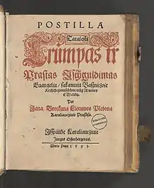 - Postilla, tatai esti trumpas ir prastas išguldimas evangeliu, 1591
