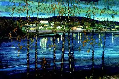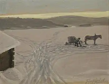 In 1898, he enrolled at the Academy of Fine Arts, Helsinki, where he studied with Eero Järnefelt.[1] He began participating in shows held by the "Helsinki Society of Artists" and was one of a large group of artists chosen to represent Finland at the Exposition Universelle (1900). It was then that he first became interested in impressionism and pointillism.[2] From 1902 to 1904, he was a student at the University of Helsinki, graduating with a degree in drawing.