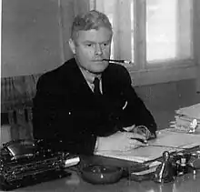 Jonas Lie (31 December 1899 – 11 May 1945) was a Norwegian councilor of state in the Nasjonal Samling government of Vidkun Quisling in 1940, then acting councilor of state 1940–1941, and Minister of Police between 1941 and 1945 in the new Quisling government. Lie was the grandson of the novelist Jonas Lie and the son of the writer Erik Lie.