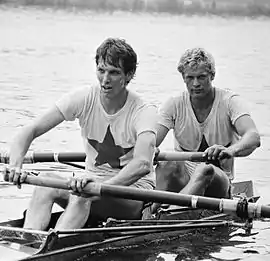 Joost Adema (born 28 September 1959) is a retired Dutch rower who specialized in the coxless pair. In this event, together with Sjoerd Hoekstra, he won a bronze medal at the 1982 World Rowing Championships[1] and finished in seventh place at the 1984 Summer Olympics.[2]