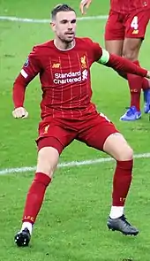 Liverpool finished the 2018–19 season with one of the highest points totals in English top-flight history, but finished in 2nd place one point behind champions Manchester City.[76] Liverpool's good form continued into the following season, and after a break caused by the COVID-19 pandemic, Henderson led Liverpool to their first league title in 30 years on 25 June 2020.[77] Often credited for heroic and passionate performances throughout the league-winning season, Henderson was named the FWA Footballer of the Year for 2020 along with being named a finalist for the PFA Player of the Year. Having featured in 40 games during the 2019–20 season, Henderson entered the list of top 40 all-time Liverpool appearance makers at the end of the campaign.[78]